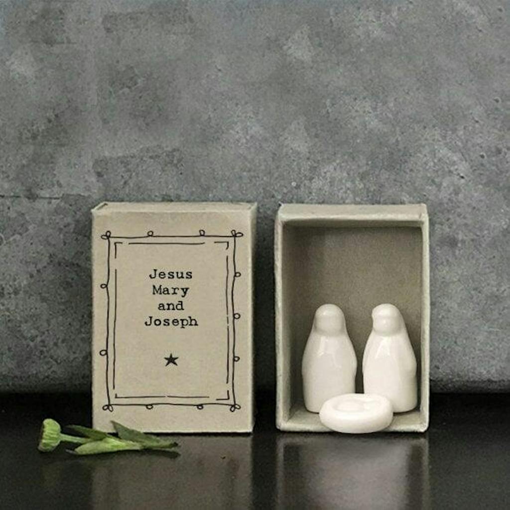 The mini figures are presented in a charming matchbox with a written message "Jesus, Mary And Joseph" on the cover. A tender keepsake to treasure forever.