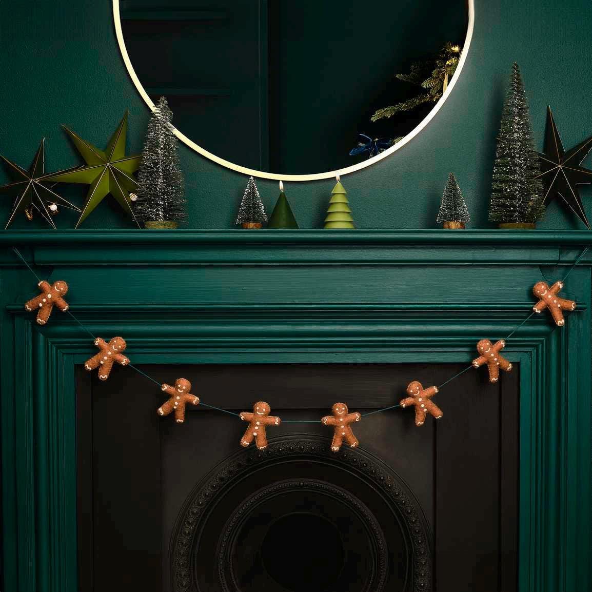 Add this fun felt gingerbread man Christmas garland to the mantelpiece to add some festive joy.