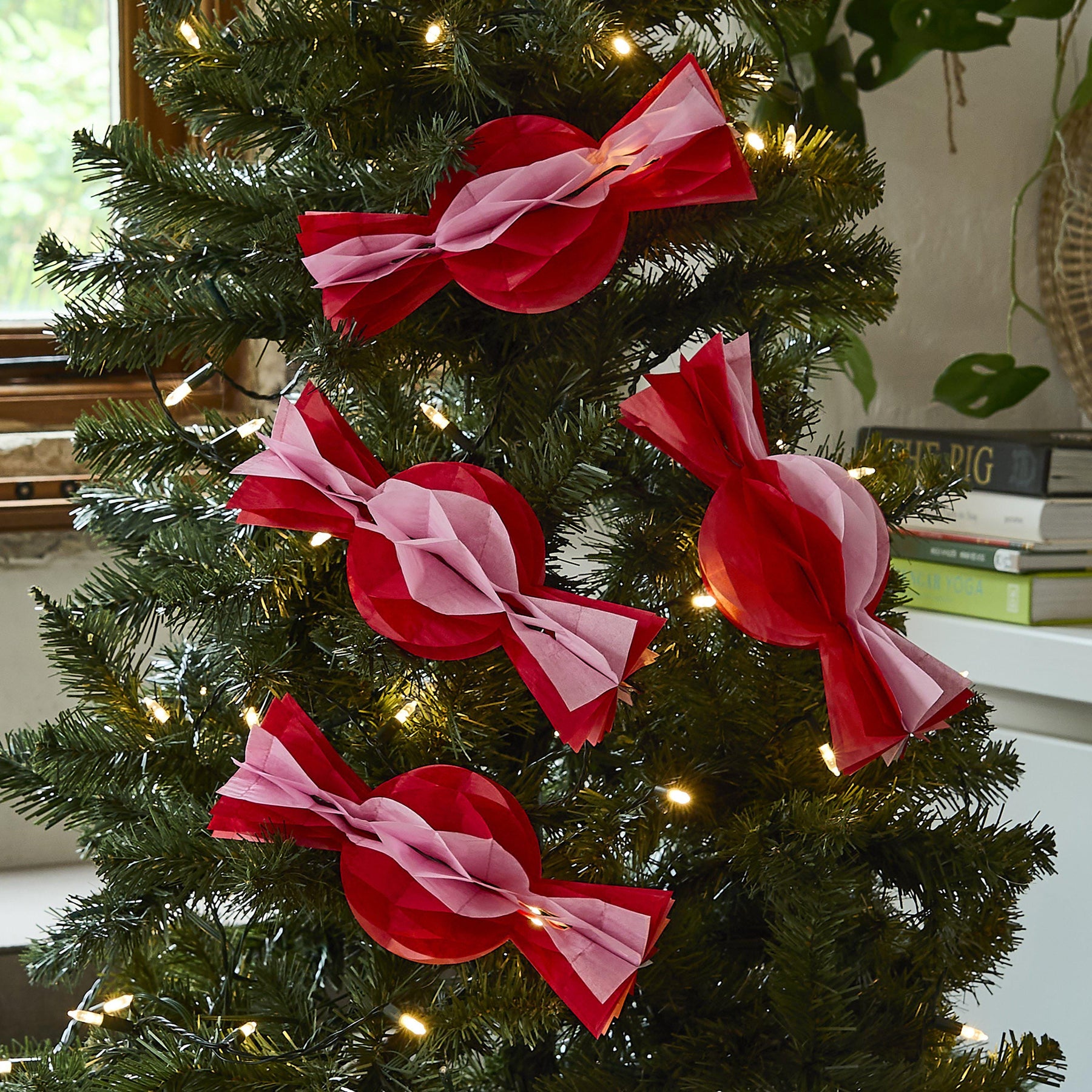 Honeycomb Sweets - Pink & Red Honeycomb Christmas Candy Decorations - Christmas Decorations - Holiday Decor - Pack Of 4 - Jolie Fete UK