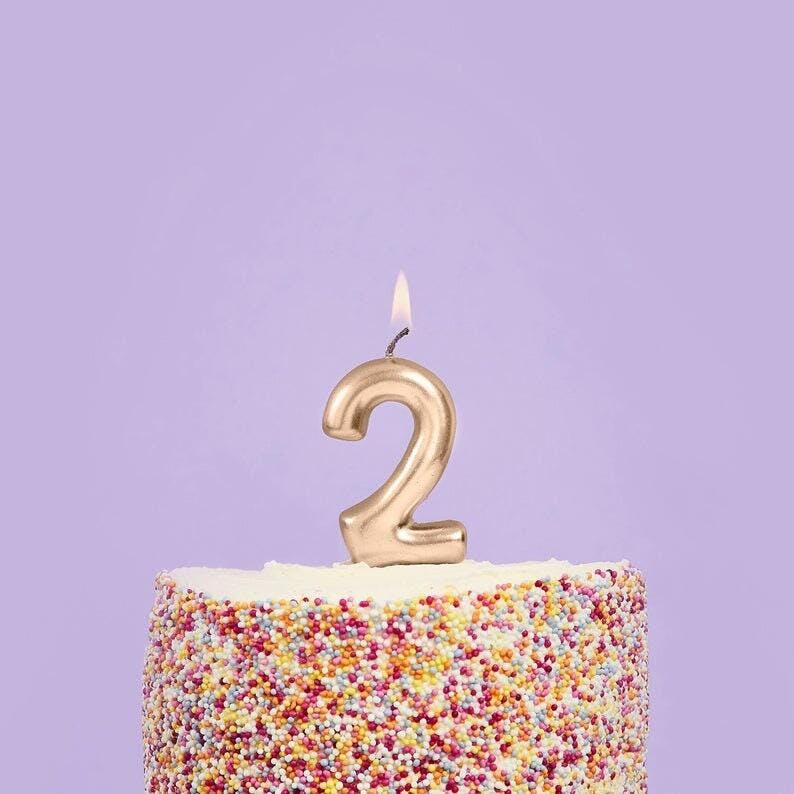 Gold Number 2 Candle - Two Birthday Cake Candle