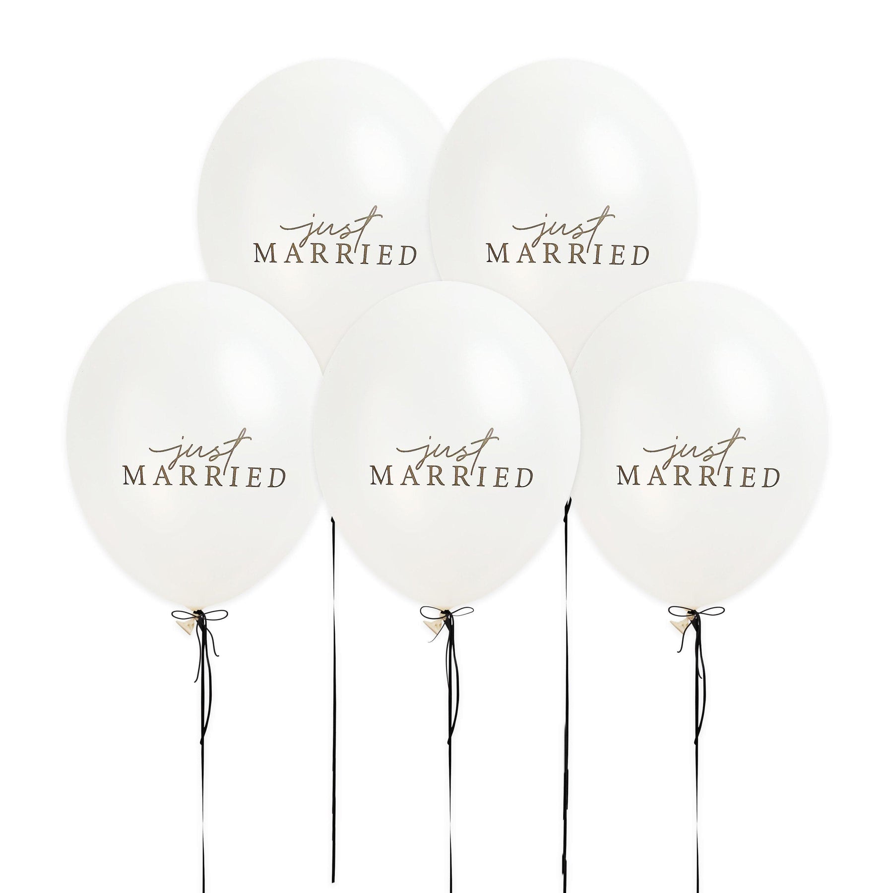Elegant Typography: Each balloon features a beautiful combination of a flowing cursive "just" and a classic serif "MARRIED" lettering for a premium, boutique look.