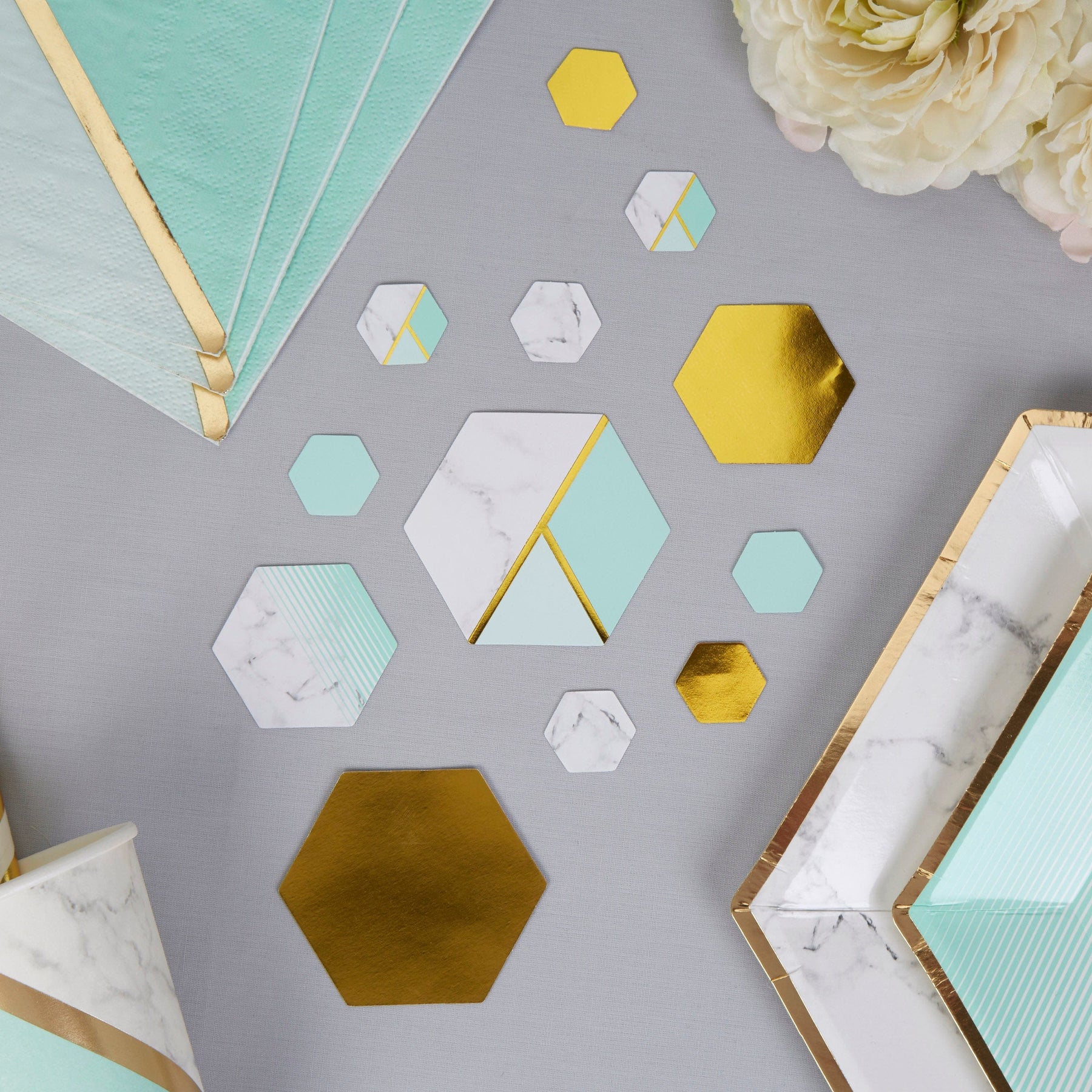 Mint, Gold & Marble Table Scatters - Colour Block Mint