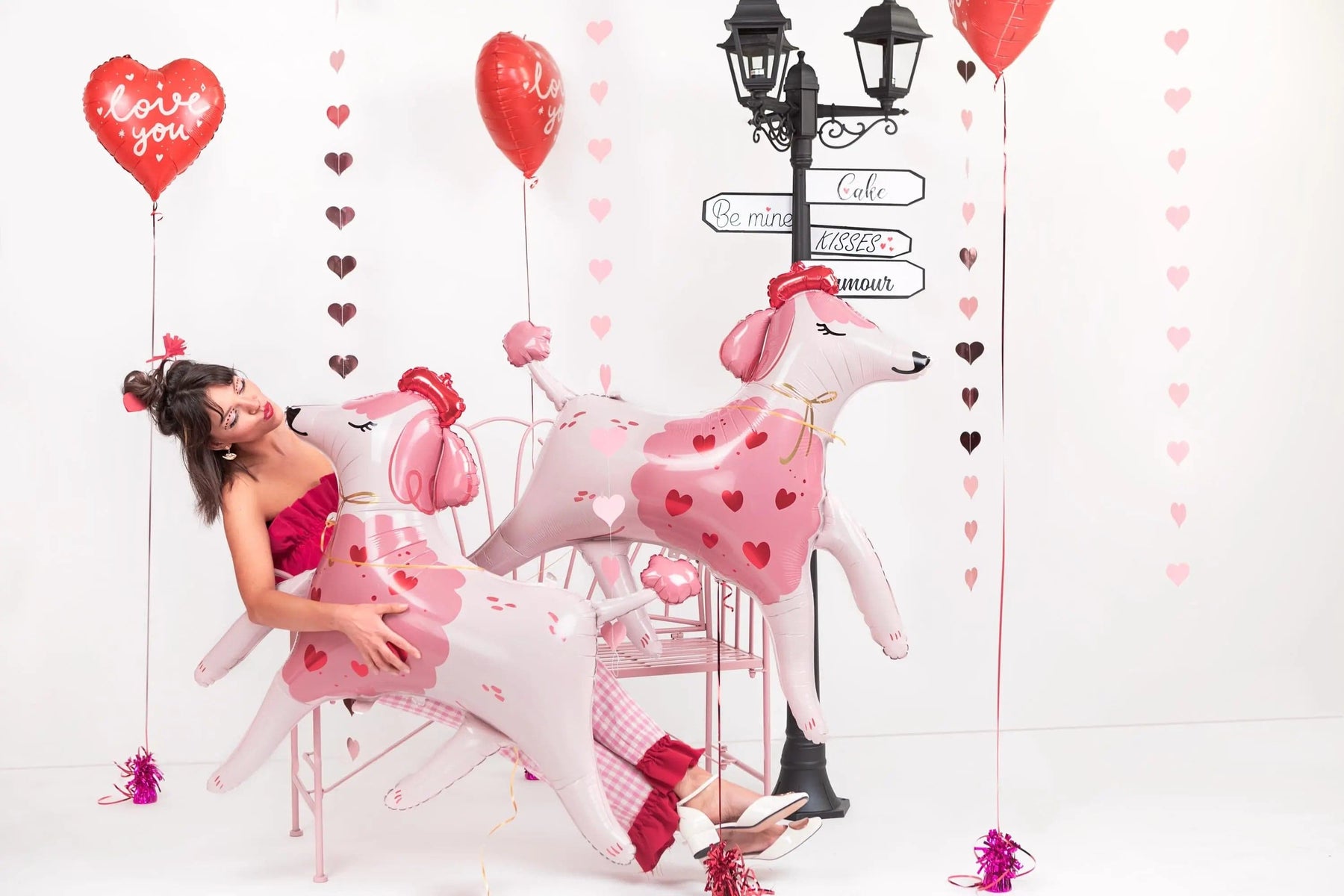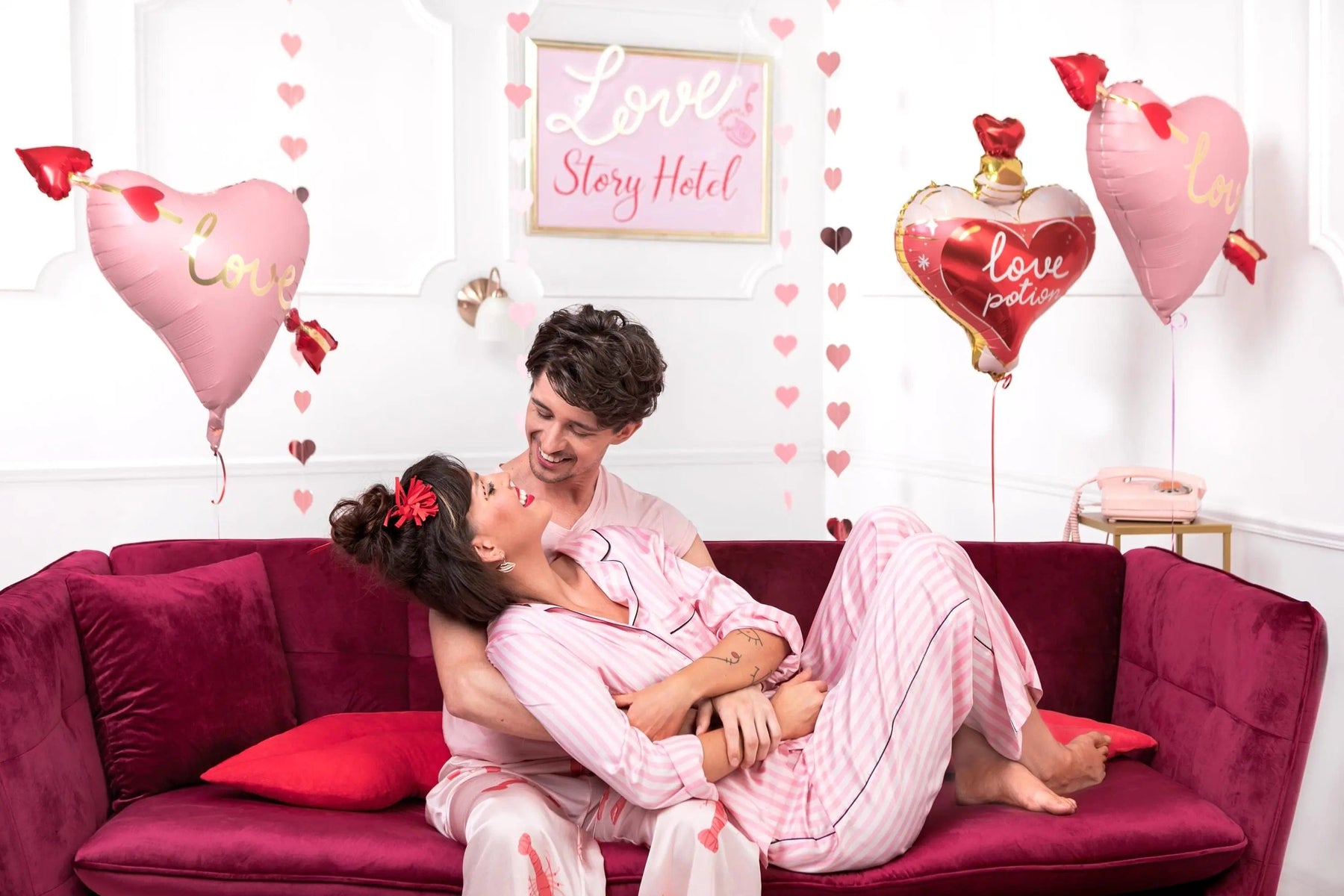 Create a romantic and whimsical atmosphere with this charming pink heart garland. Featuring a cascade of delicate pink hearts, this garland adds a touch of playful elegance to any space.