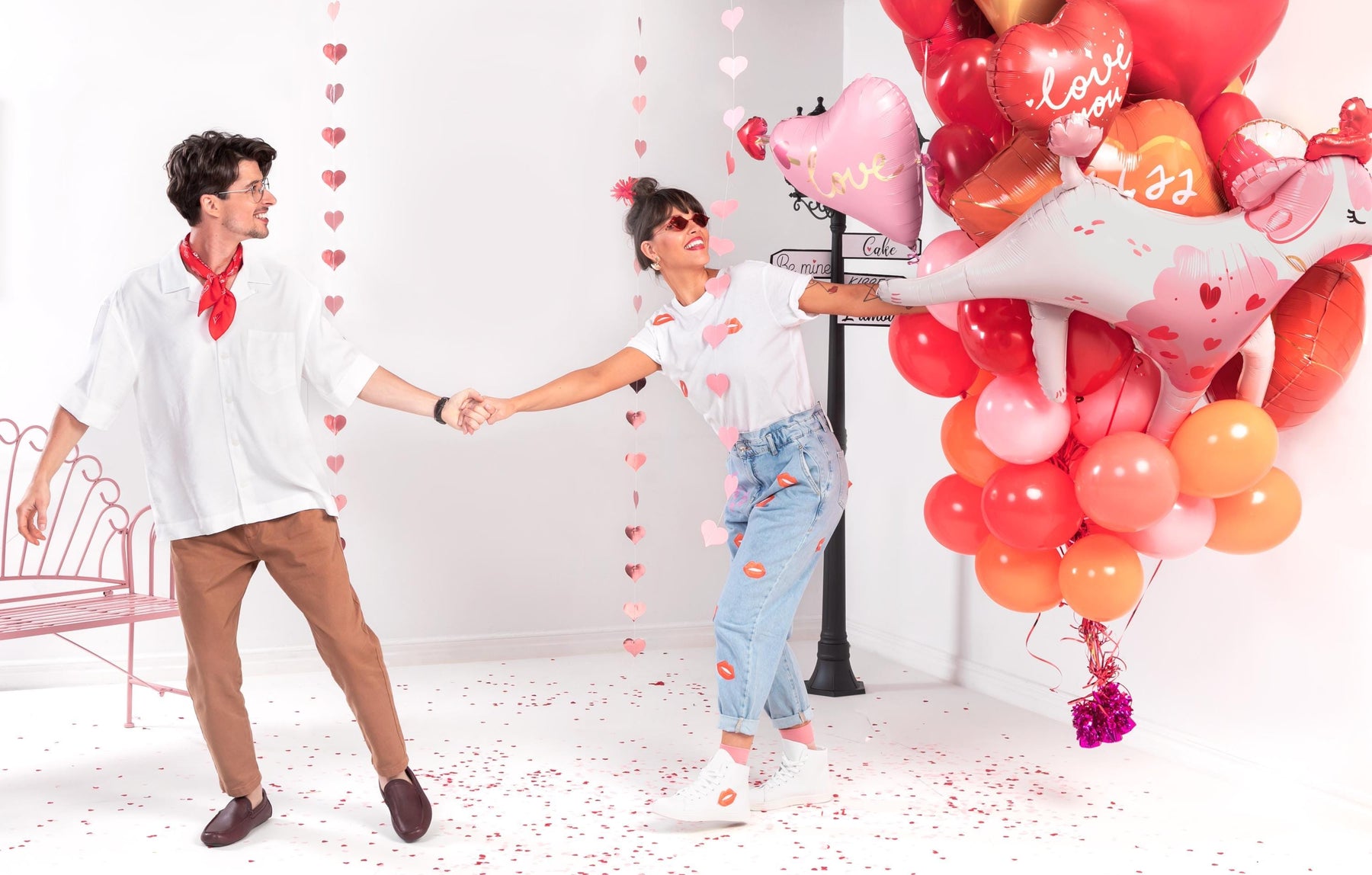 Red, Pink And Confetti Balloons - Valentine's Day Balloons - Valentines Party Decor - Valentines Backdrop - Balloon Bundle - Pack of 5